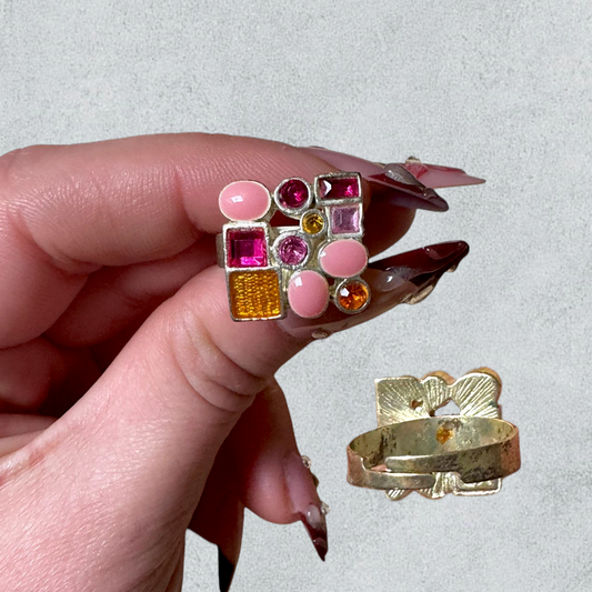 Dark Red Crystal Cluster Flower Earrings With Clip Closure