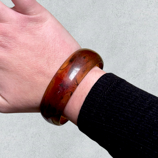 Vintage Amber Root Beer Marble Bakelite Bangle Translucent Oval