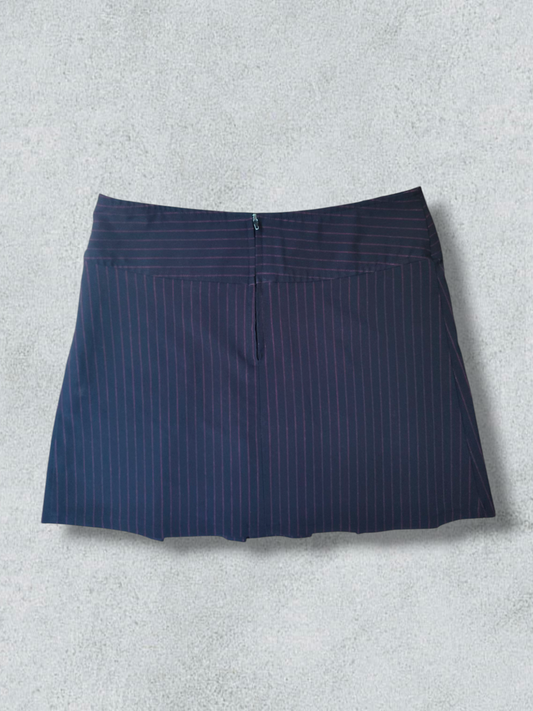 Black Pleated Mini Skirt With Red Pinstripes.
