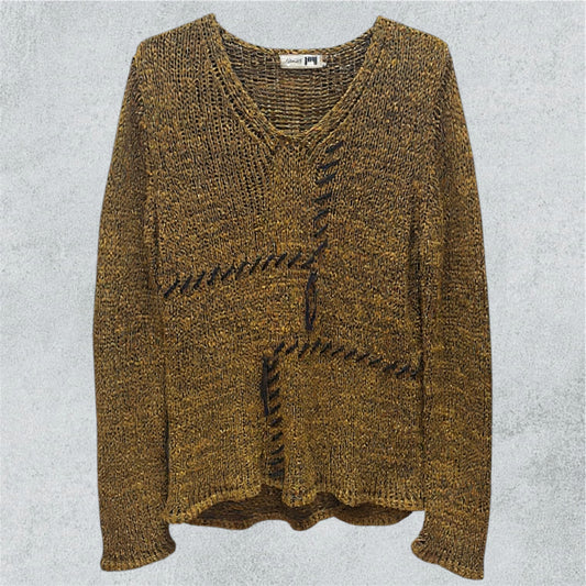 Hand-Stitched Textured Knit Sweater in Mustard Brown