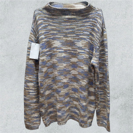 Knitted Sweater with Blue and Beige Camouflage Effect