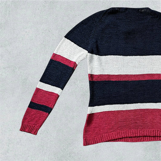 Striped Crew-Neck Sweater With Decorative Front Detailing