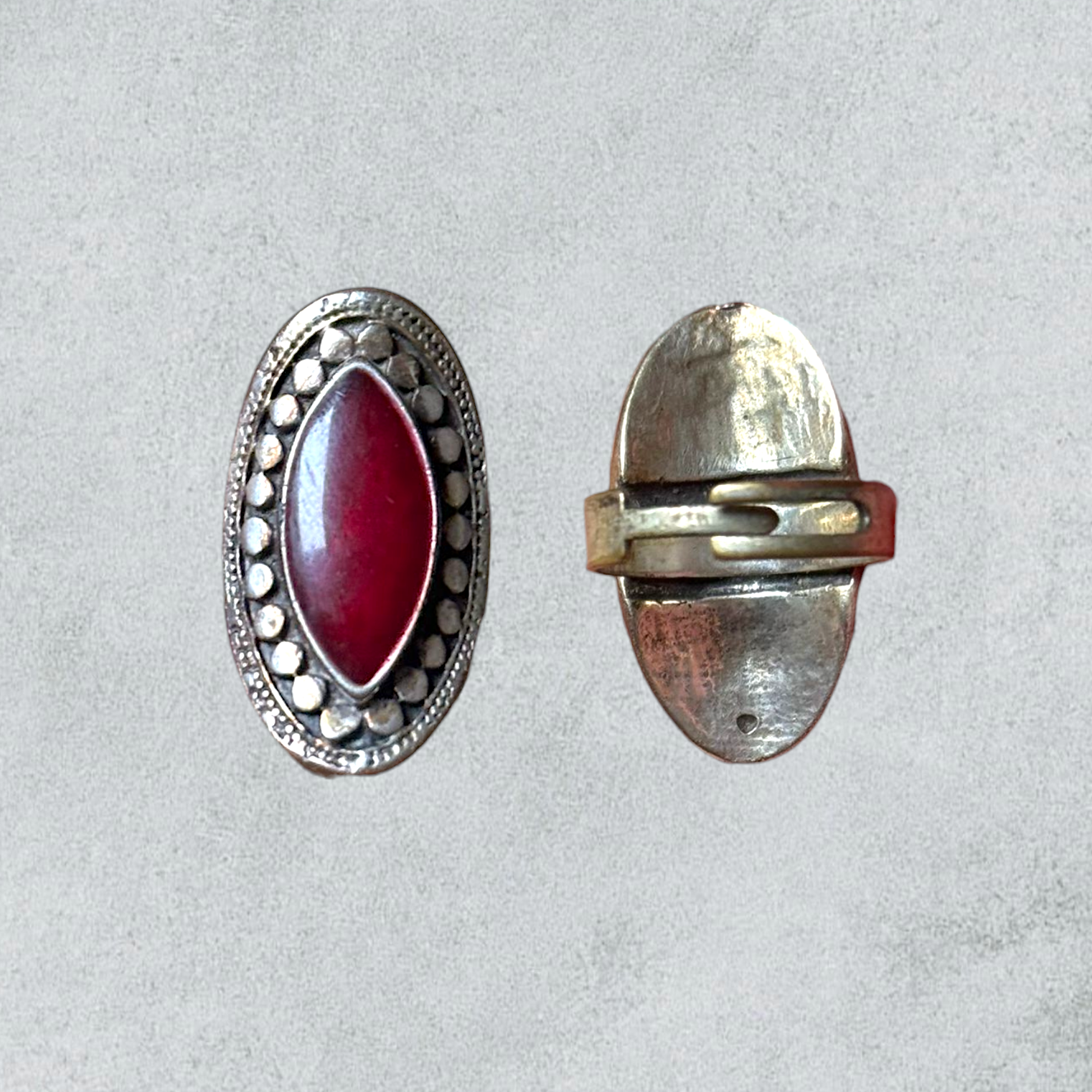 Adjustable Vintage Ring with Red Stone
