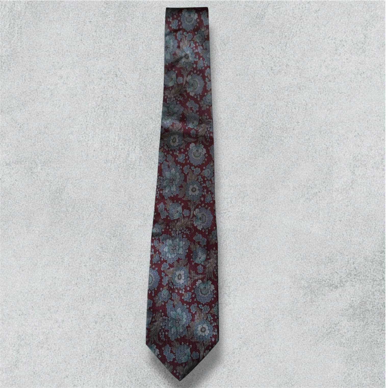 - Pattern: Blue and brown floral on a burgundy background