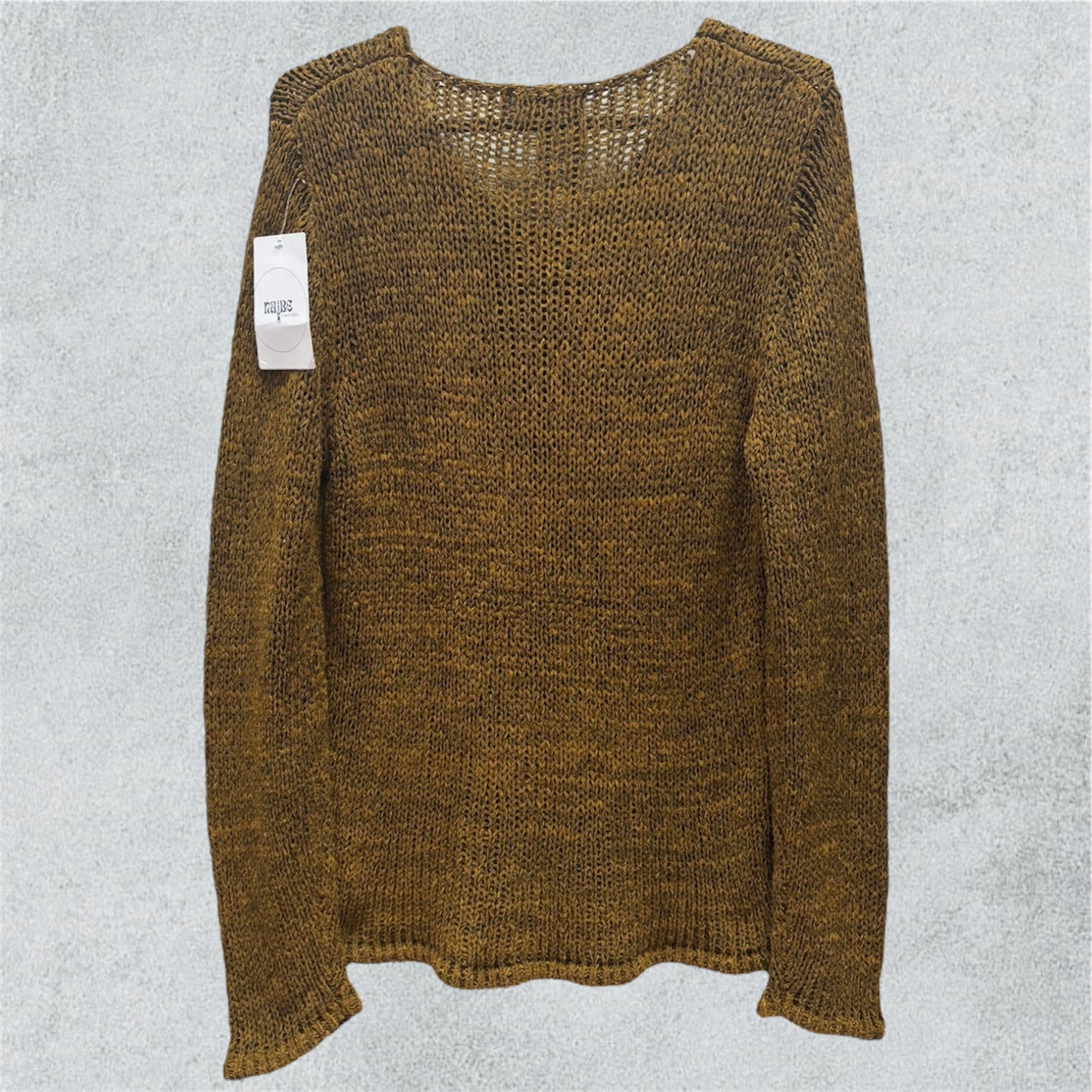 Hand-Stitched Textured Knit Sweater in Mustard Brown