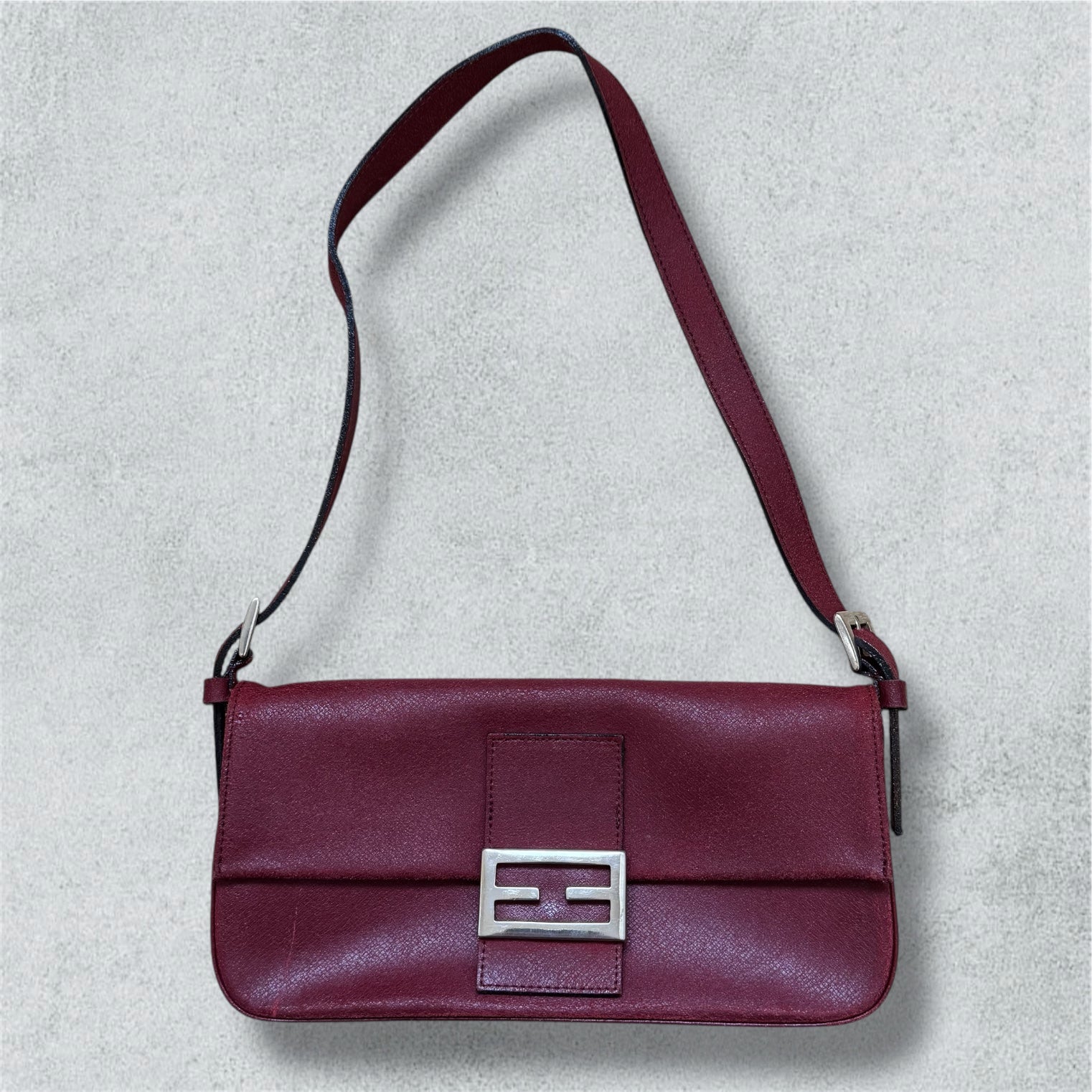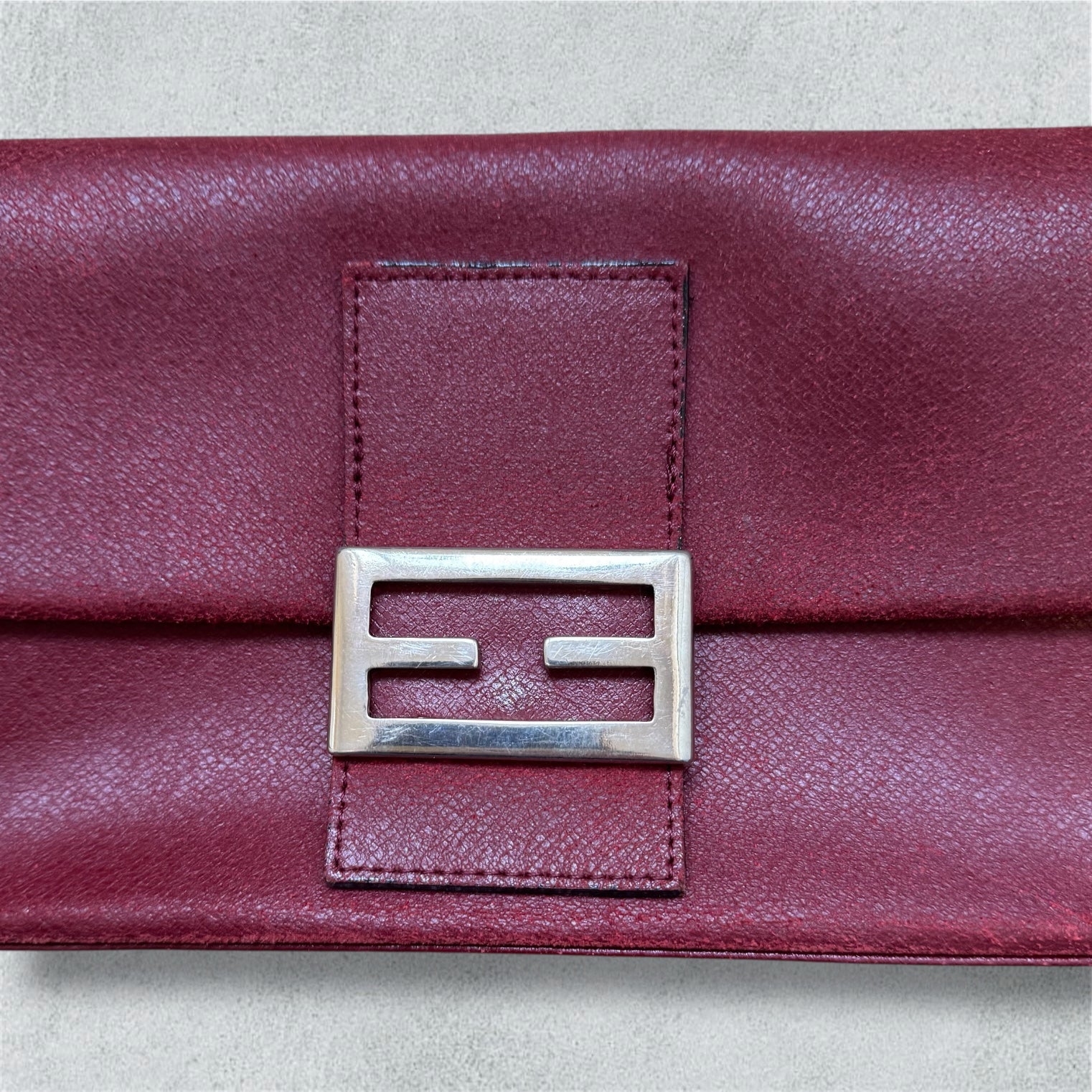 Material: Smooth burgundy faux leather with a structured finish and silver-tone hardware.